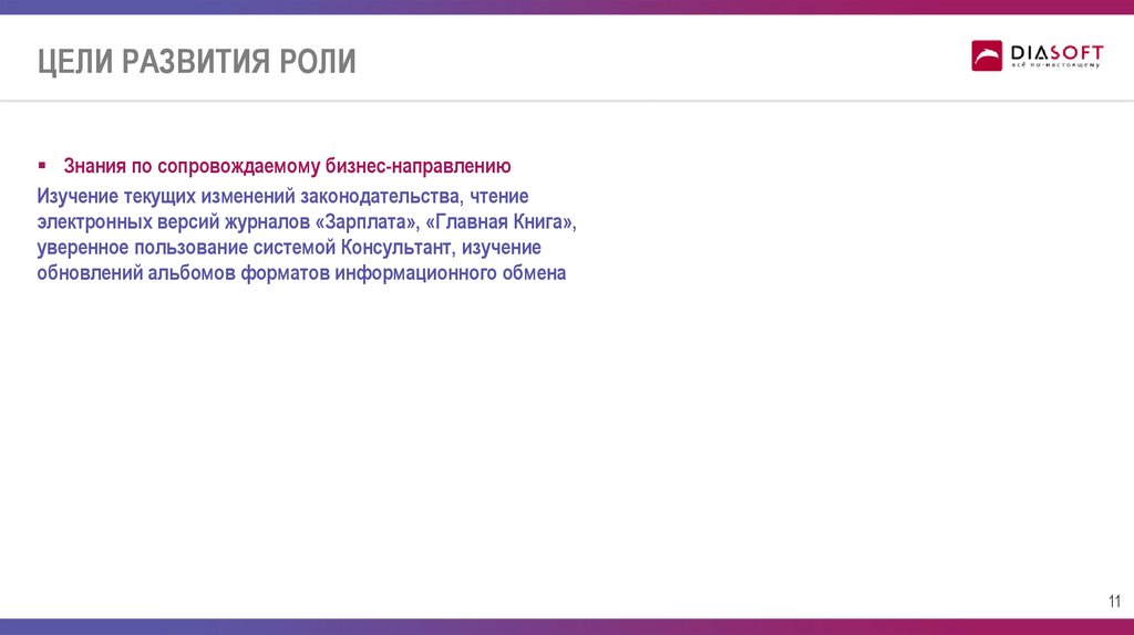 ЦЕЛИ РАЗВИТИЯ РОЛИЗнания по сопровождаемому бизнес-направлению