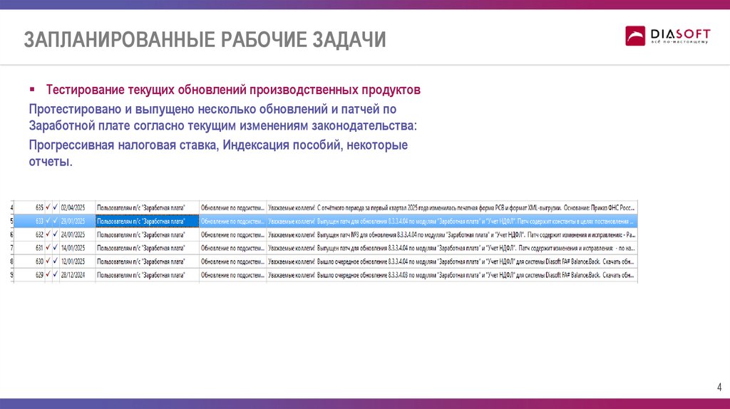 ЗАПЛАНИРОВАННЫЕ РАБОЧИЕ ЗАДАЧИТестирование текущих обновлений производственных продуктов