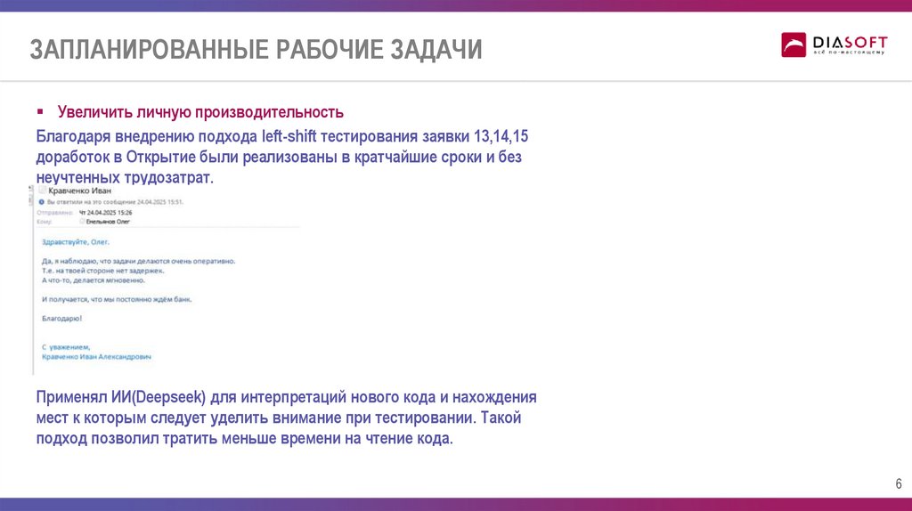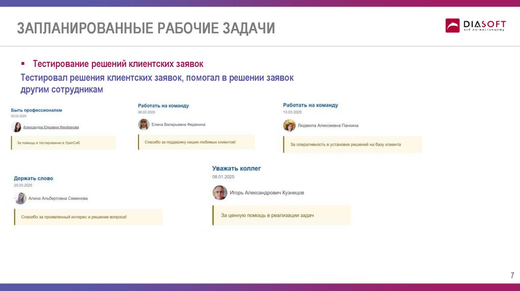 ЗАПЛАНИРОВАННЫЕ РАБОЧИЕ ЗАДАЧИТестирование решений клиентских заявок