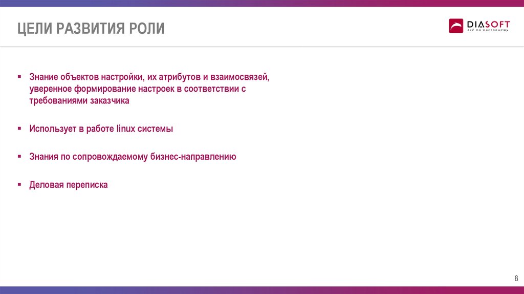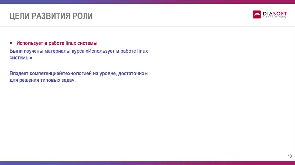 ЦЕЛИ РАЗВИТИЯ РОЛИИспользует в работе linux системы