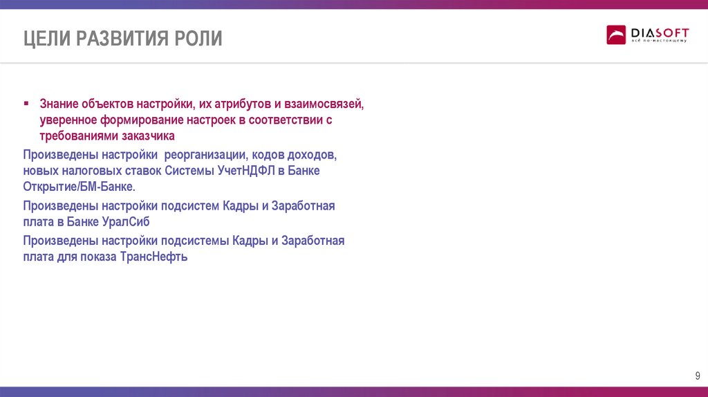 ЦЕЛИ РАЗВИТИЯ РОЛИЗнание объектов настройки, их атрибутов и взаимосвязей,