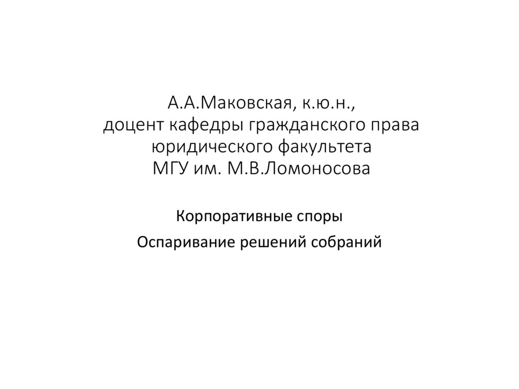 1. А.А.Маковская, к.ю.н., доцент кафедры гражданского права юридического факультета МГУ им. М.В.Ломоносова