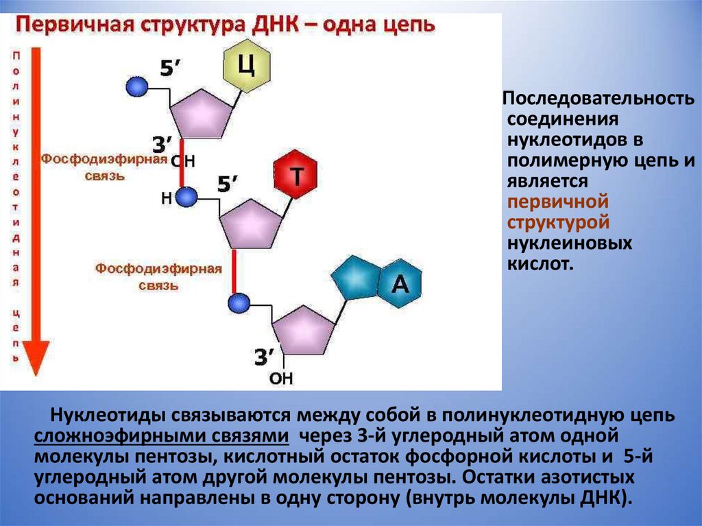 Нуклеотиды связываются между собой в полинуклеотидную цепь