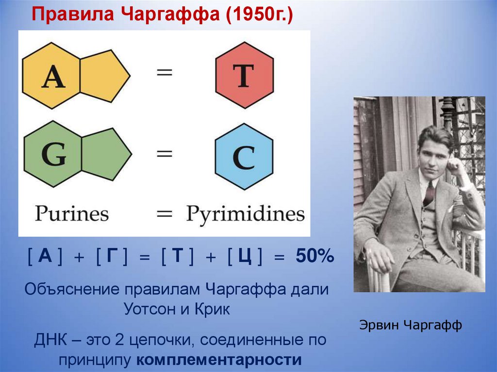 основаниями: аденином —тимином и гуанином – цитозином. Далее к