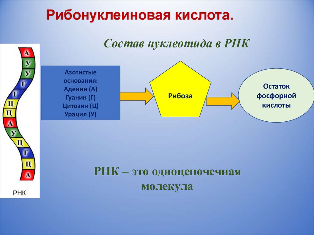 Рибонуклеиновая кислота.Состав нуклеотида в РНК