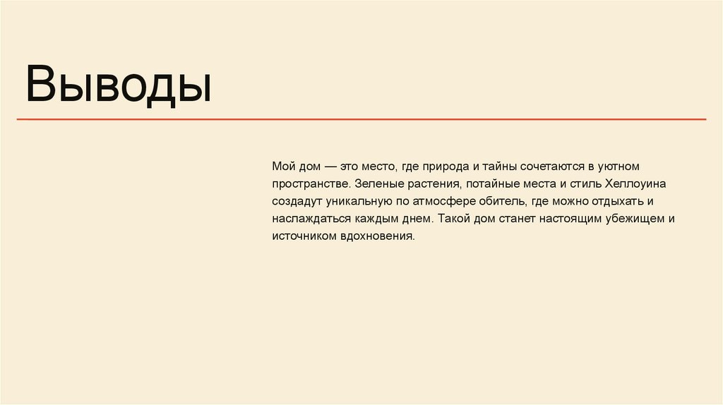 ВыводыМой дом — это место, где природа и тайны сочетаются в уютном