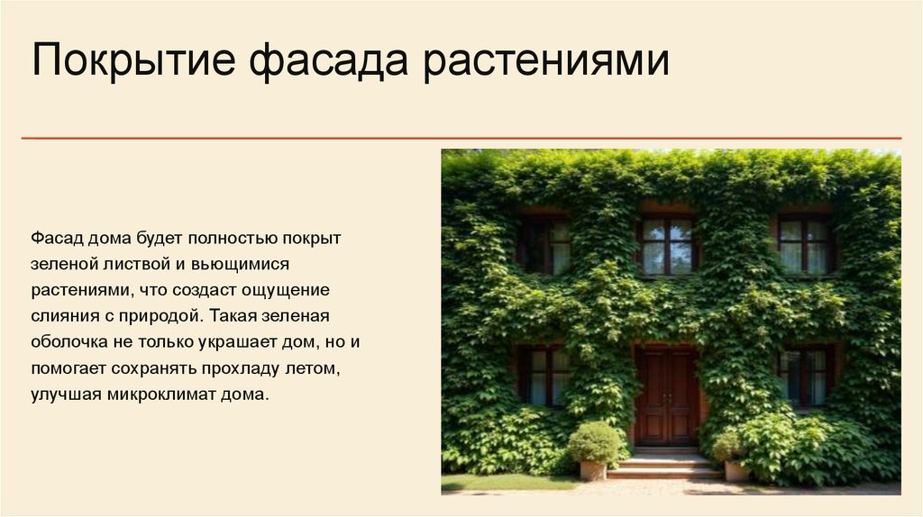 Покрытие фасада растениямиФасад дома будет полностью покрыт