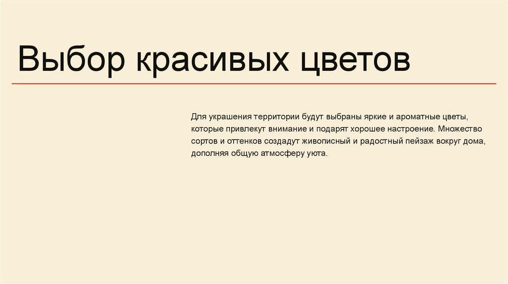 Выбор красивых цветовДля украшения территории будут выбраны яркие и ароматные цветы,