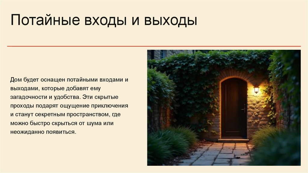 Потайные входы и выходыДом будет оснащен потайными входами и