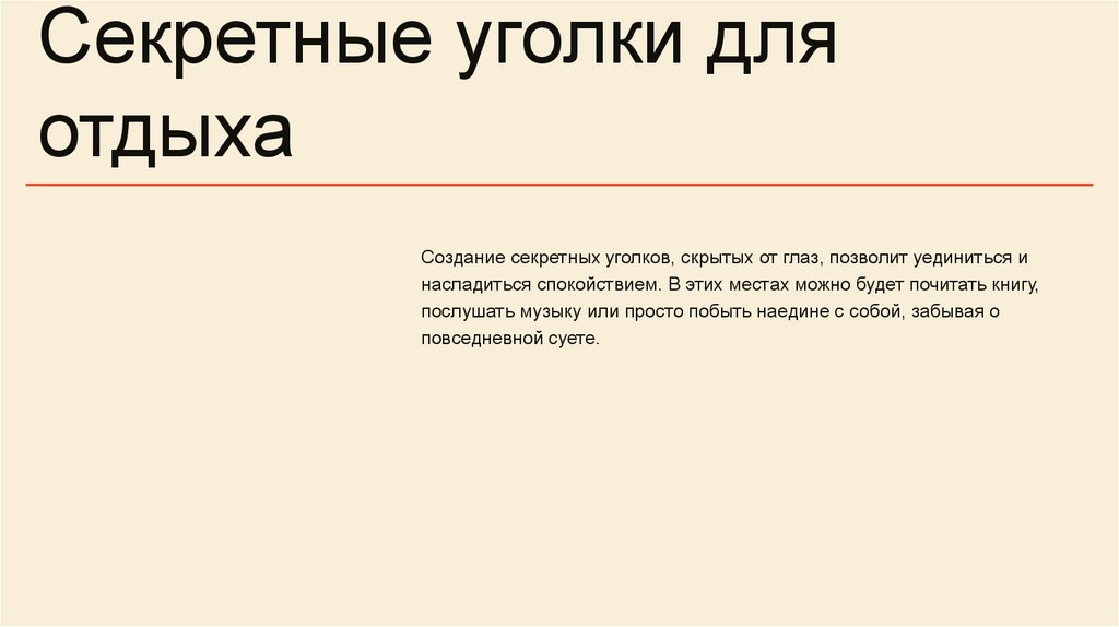 Создание секретных уголков, скрытых от глаз, позволит уединиться и