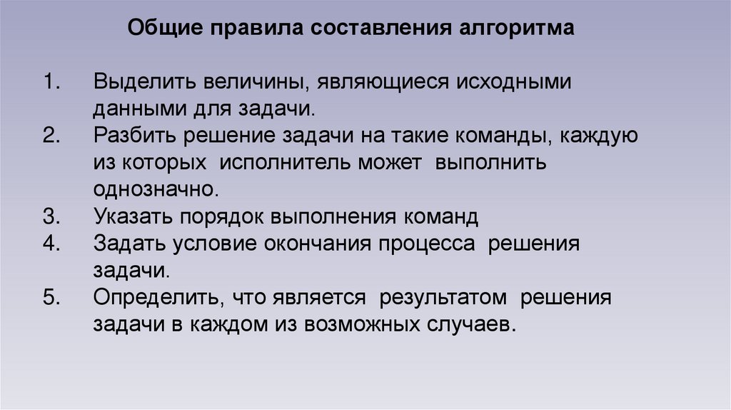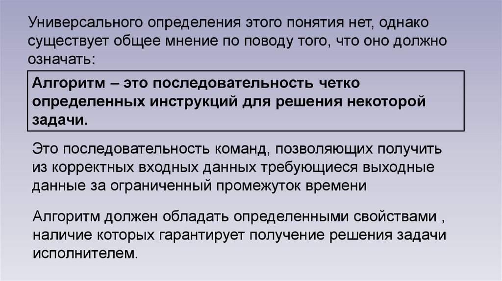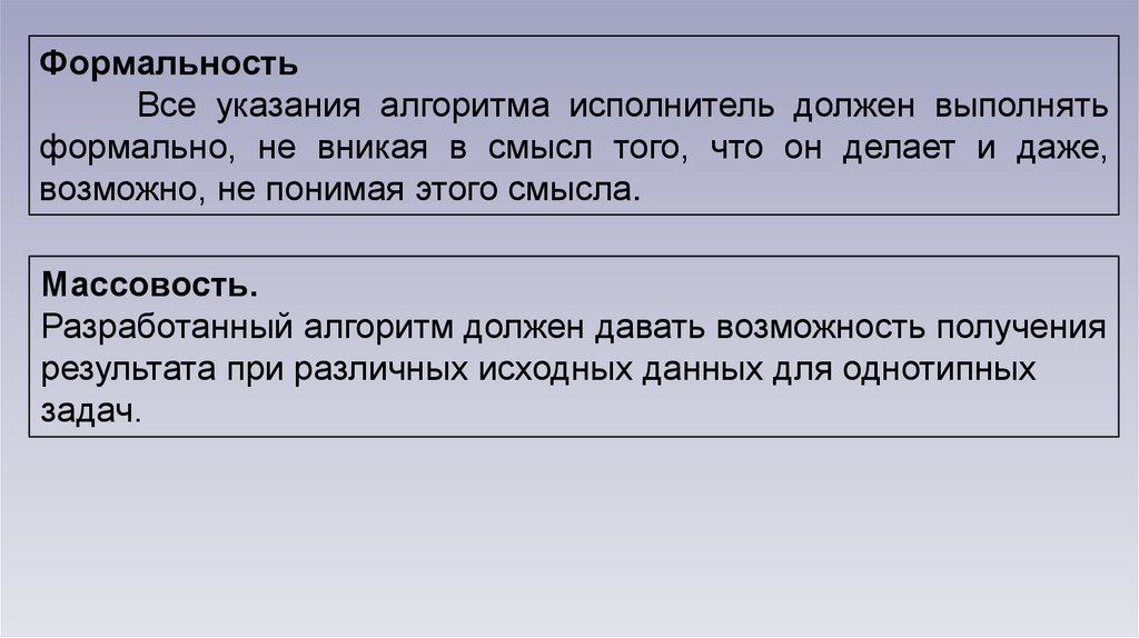 ФормальностьВсе указания алгоритма исполнитель должен выполнять