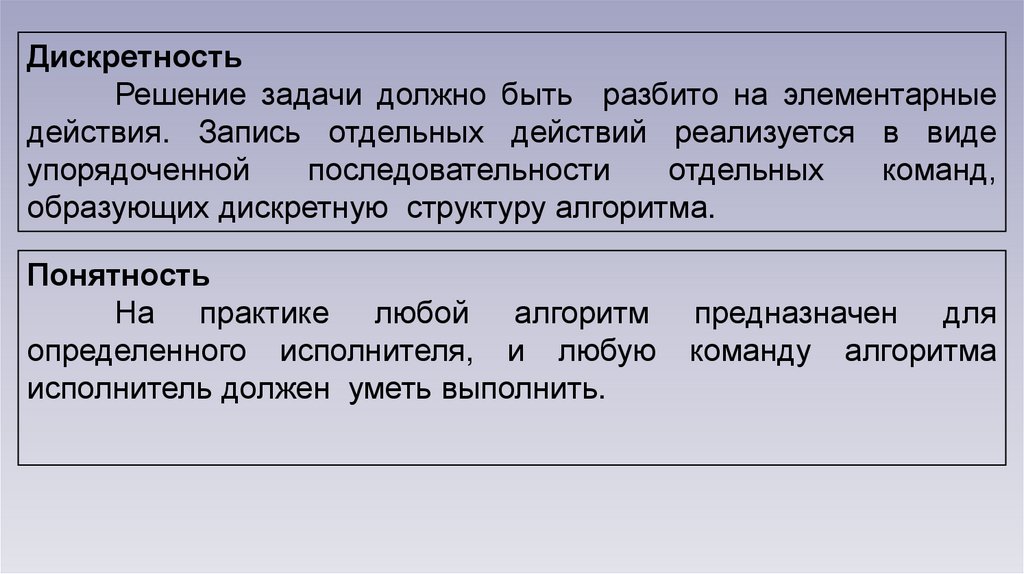 ДискретностьРешение задачи должно быть разбито на элементарные