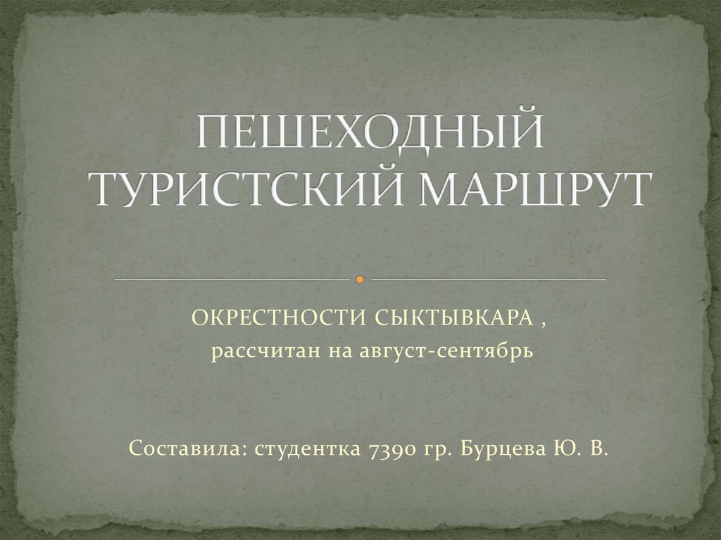 1. ПЕШЕХОДНЫЙ ТУРИСТСКИЙ МАРШРУТ