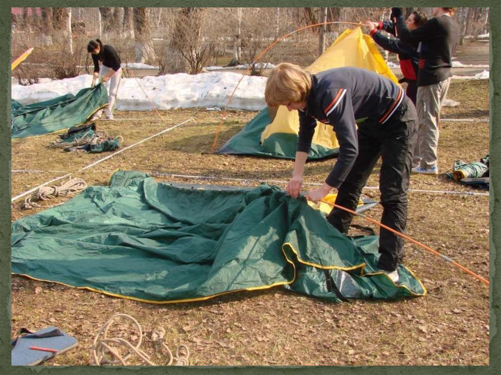 Получение навыков установки палатки, готовкипищи на костре, преодоления препятствий,