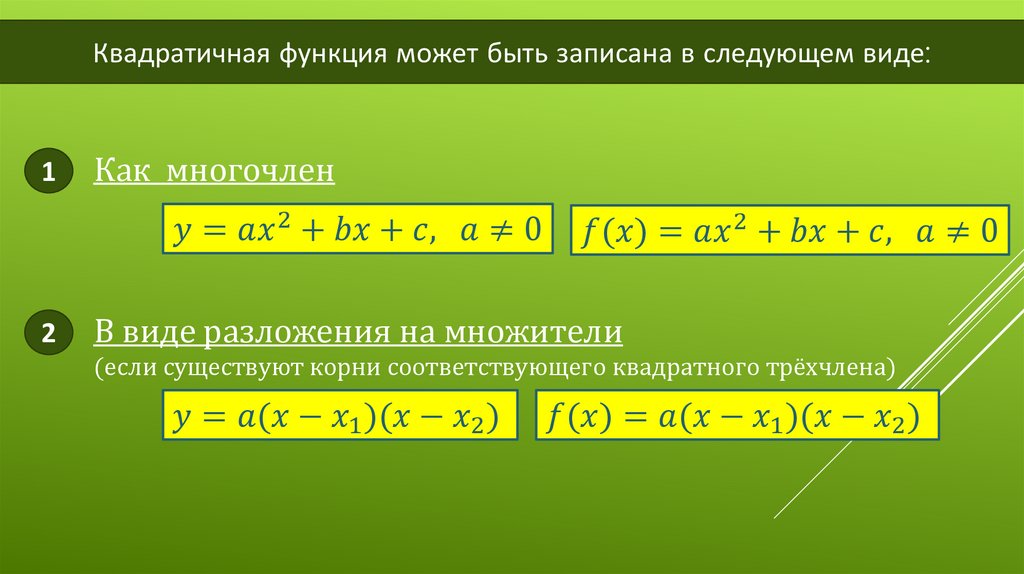 КВАДРАТИЧНАЯ ФУНКЦИЯИ ЕЁ СВОЙСТВА