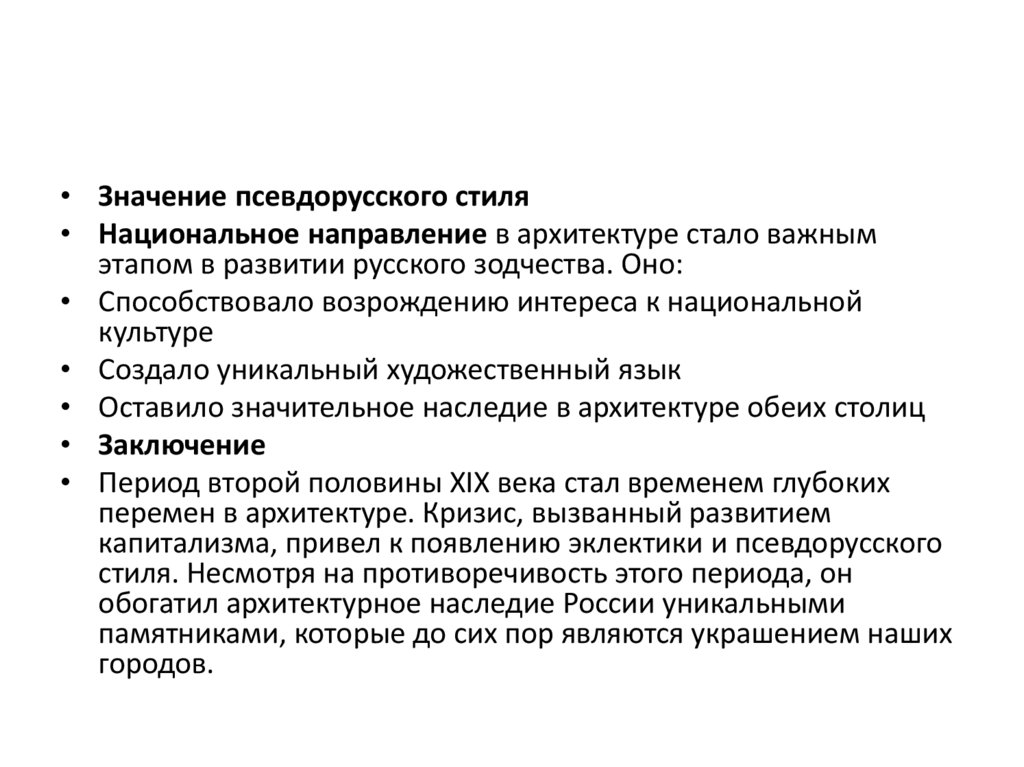 • Значение псевдорусского стиля• Национальное направление в архитектуре стало важным