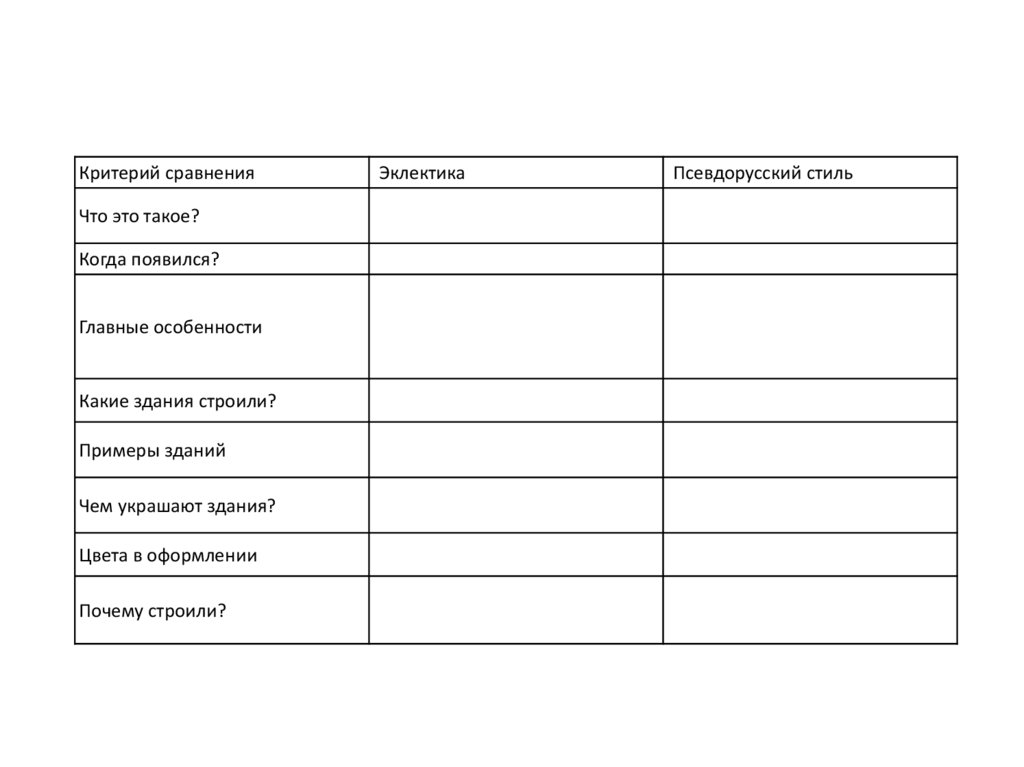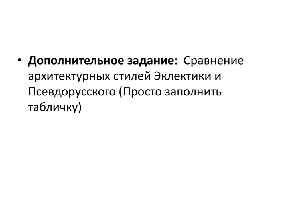 • Дополнительное задание: Сравнениеархитектурных стилей Эклектики и