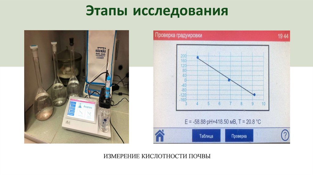 Этапы исследованияИЗМЕРЕНИЕ КИСЛОТНОСТИ ПОЧВЫ