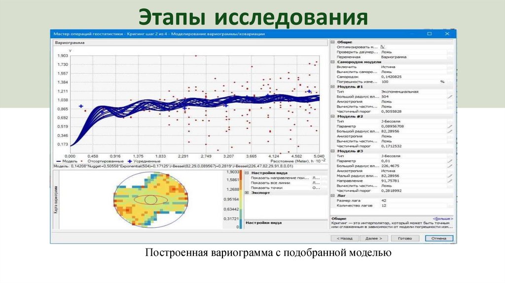 Этапы исследованияПостроенная вариограмма с подобранной моделью