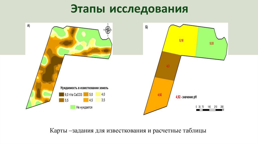 Этапы исследованияКарты –задания для известкования и расчетные таблицы