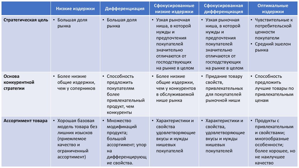 2. Выбор стратегии: базовые стратегии по М.Портеру