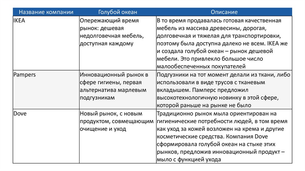 качество, более низкая стоимость, инновационный дизайн, исключительный сервис или другие