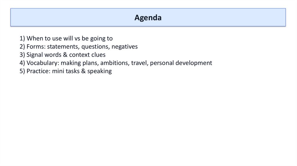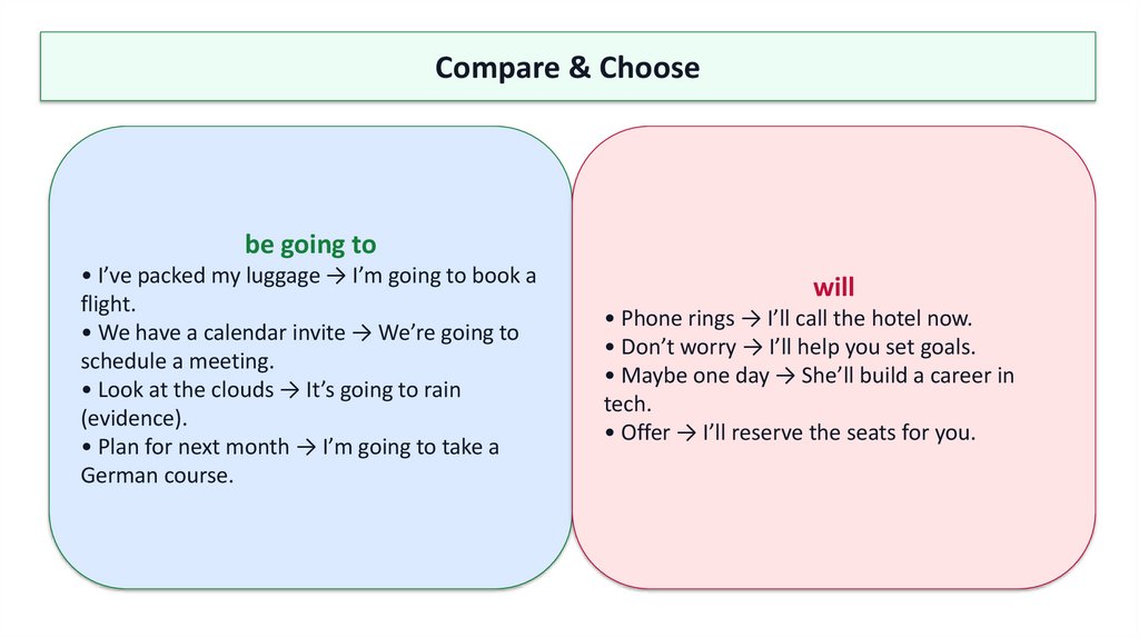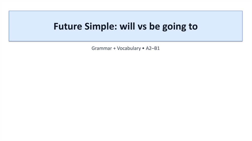 Future Simple: will vs be going toGrammar + Vocabulary • A2–B1