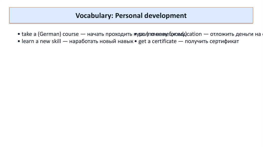 Vocabulary: Personal development• take a (German) course — начать проходить курс