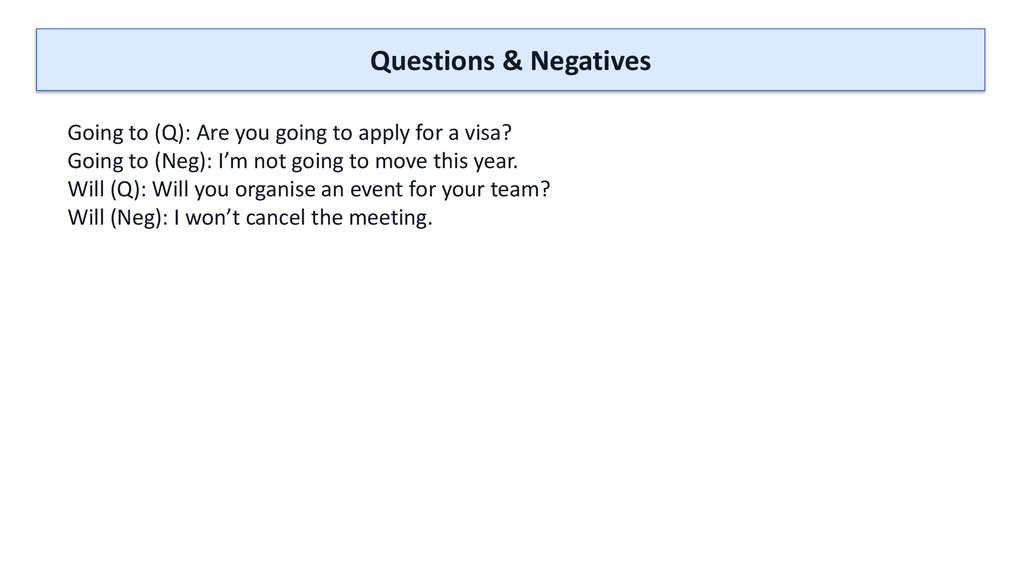 Questions & NegativesGoing to (Q): Are you going to apply for a visa?