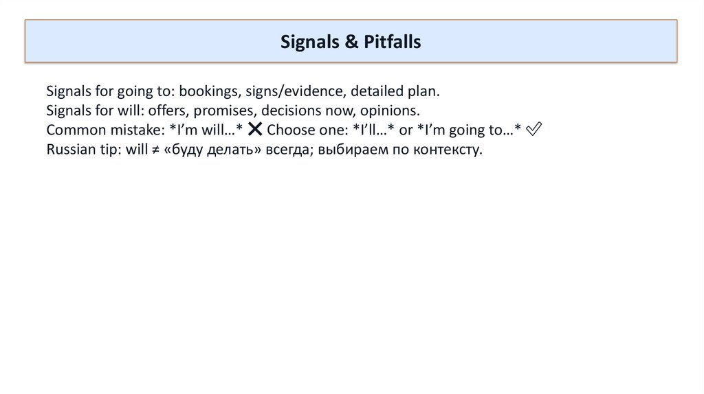 Common mistake: *I’m will…* ❌ Choose one: *I’ll…* or *I’m going to…* ✅