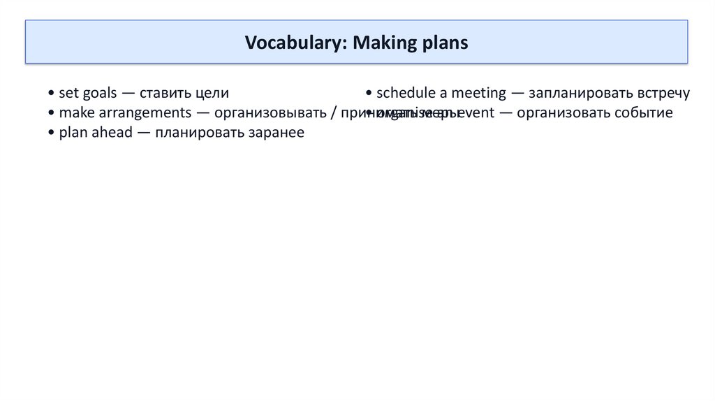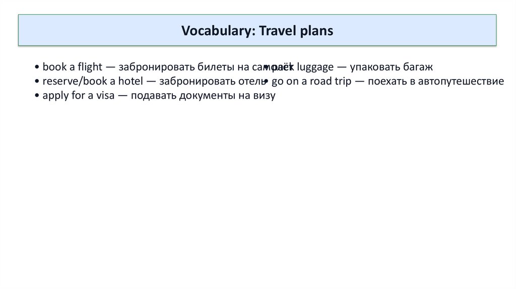 Vocabulary: Travel plans• book a flight — забронировать билеты на самолёт