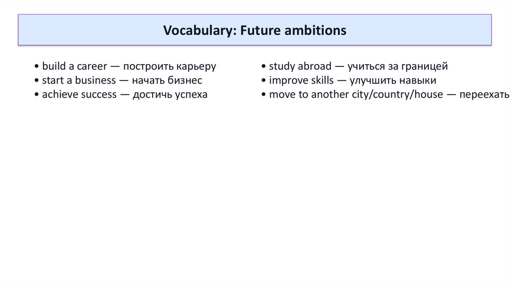Vocabulary: Future ambitions• build a career — построить карьеру