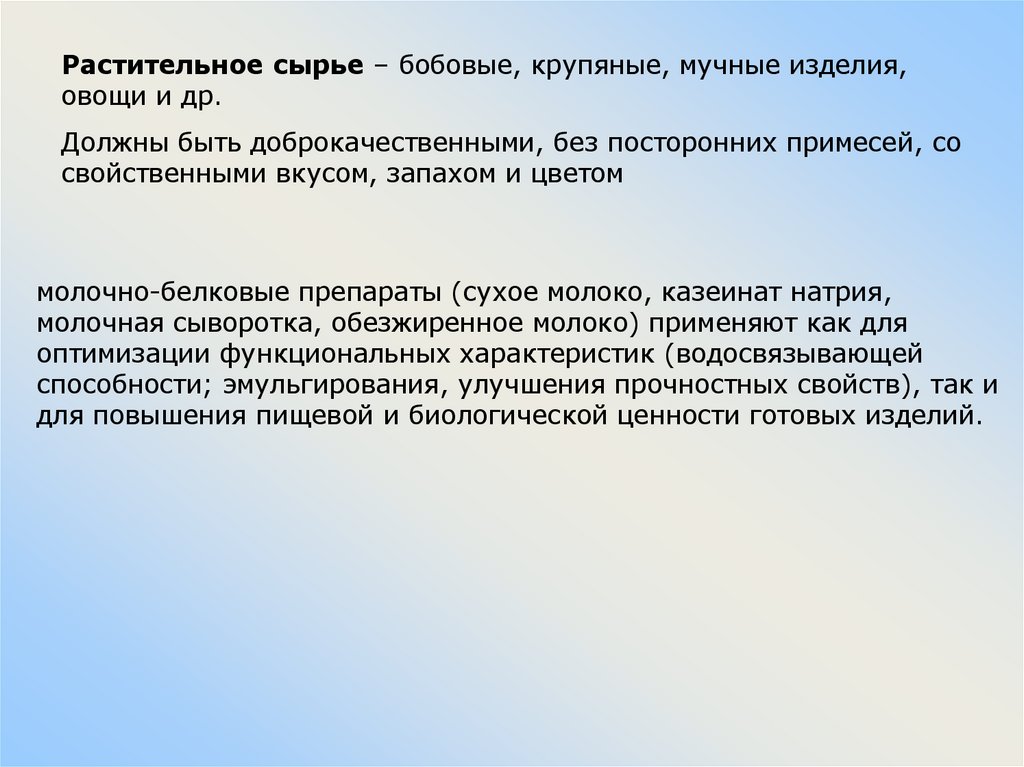 Растительное сырье – бобовые, крупяные, мучные изделия,овощи и др.