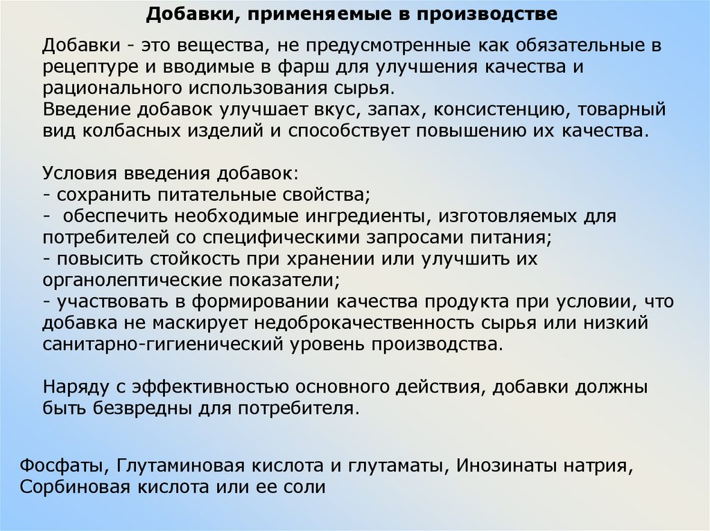 Добавки, применяемые в производствеДобавки - это вещества, не предусмотренные как обязательные в