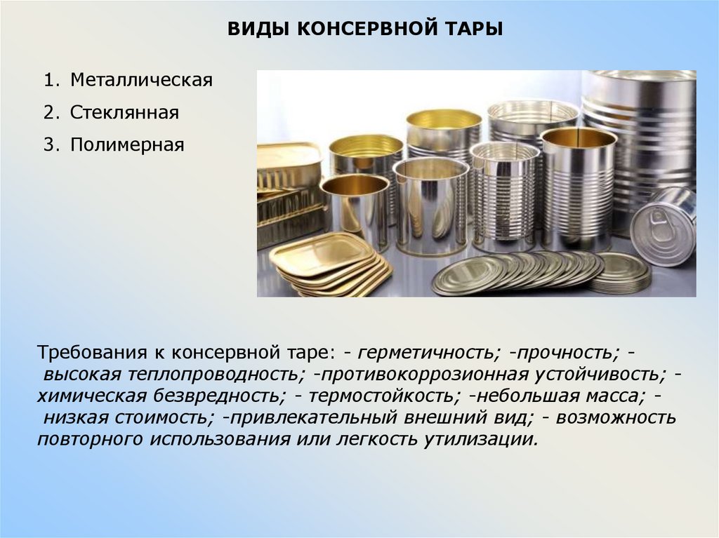 ВИДЫ КОНСЕРВНОЙ ТАРЫ1. Металлическая