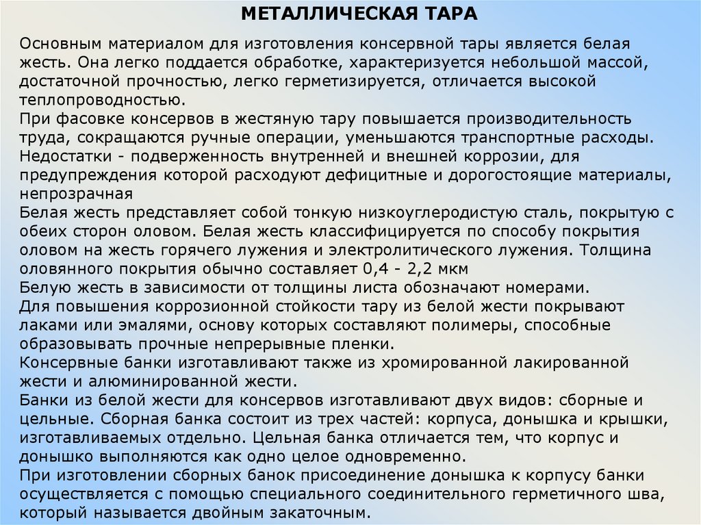 МЕТАЛЛИЧЕСКАЯ ТАРАОсновным материалом для изготовления консервной тары является белая