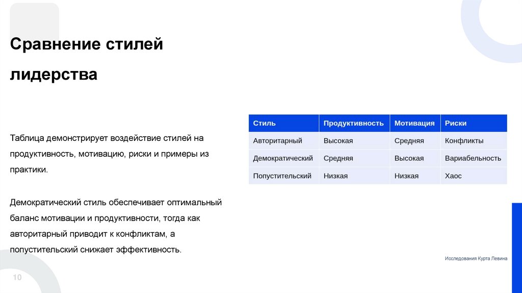 Стили лидерства по Курту ЛевинуАвторитарный стиль — лидер