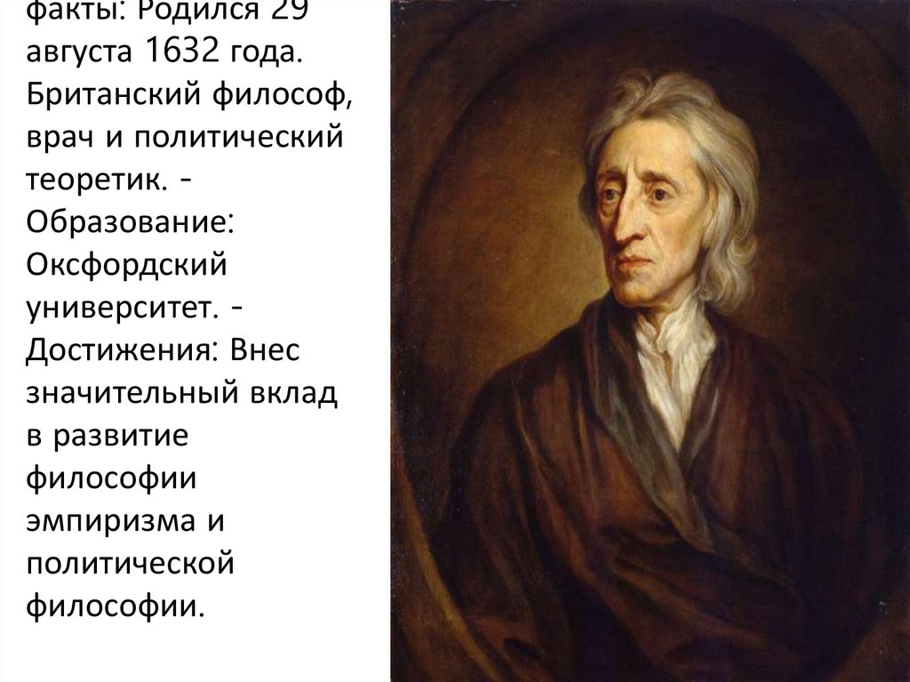 - Эмпиризм: Локк считал, что все идеичеловека происходят из опыта.
