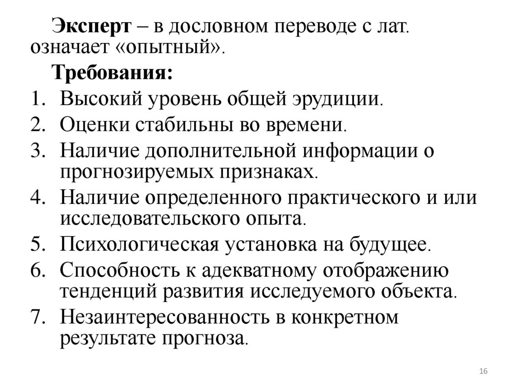 • полнота - критерии, входящие в набор, должныобеспечивать адекватную оценку объекта экспертизы либо
