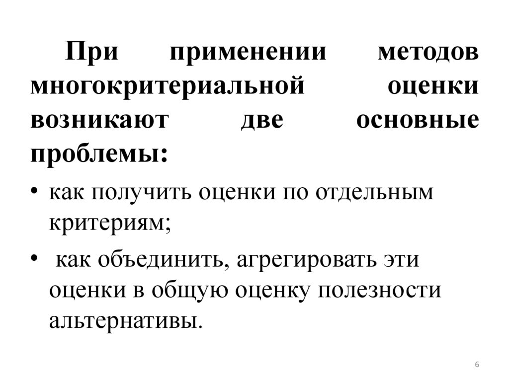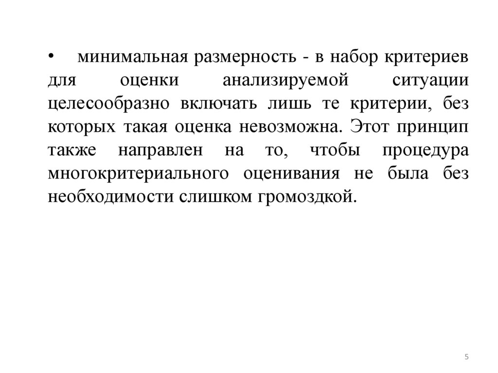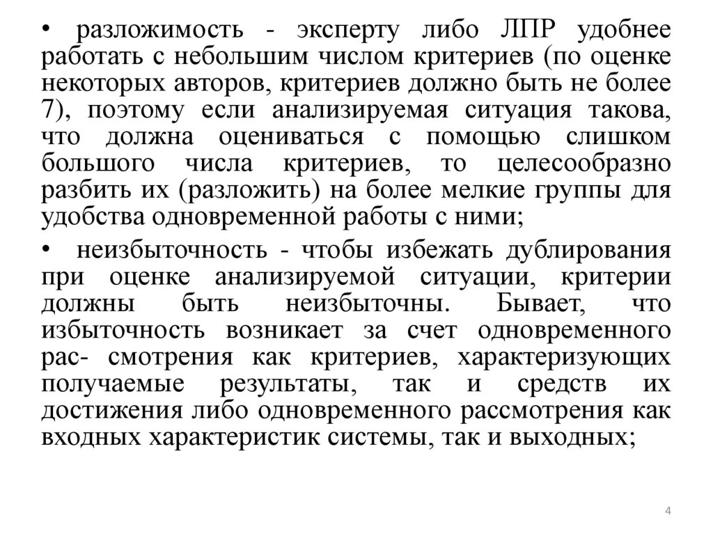 • разложимость - эксперту либо ЛПР удобнееработать с небольшим числом критериев (по оценке