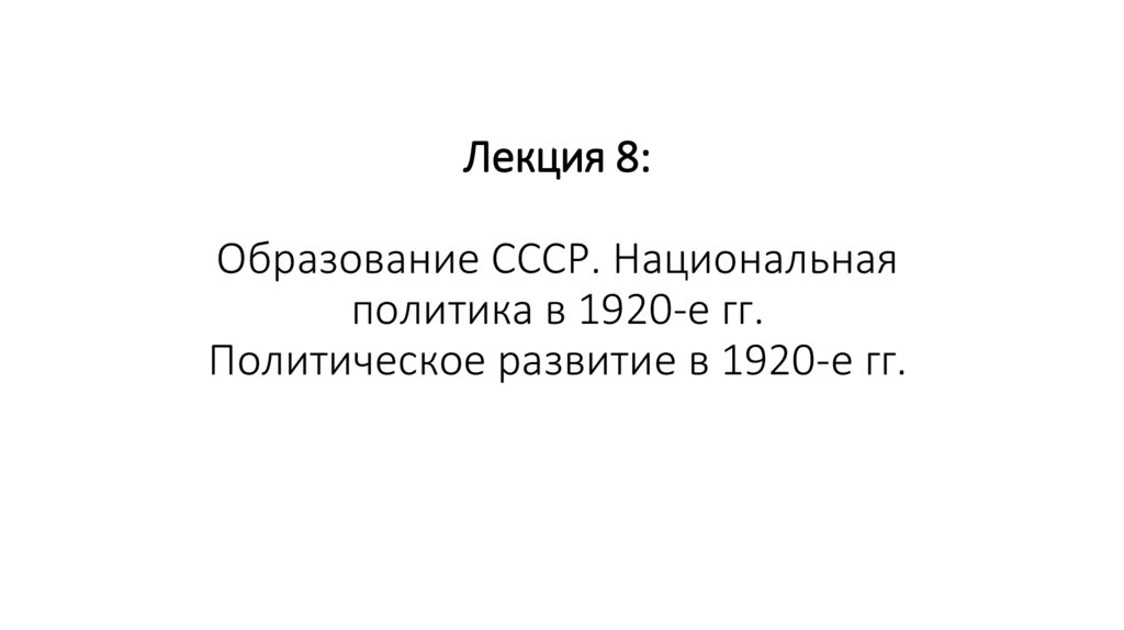 1. Лекция 8: Образование СССР. Национальная политика в 1920-е гг. Политическое развитие в 1920-е гг.