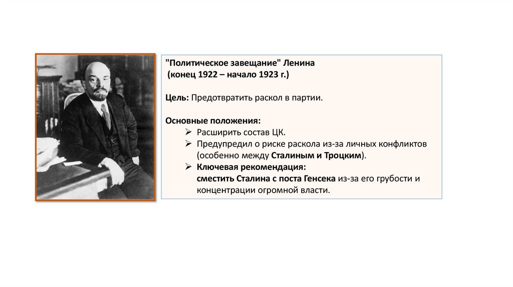 "Политическое завещание" Ленина(конец 1922 – начало 1923 г.)