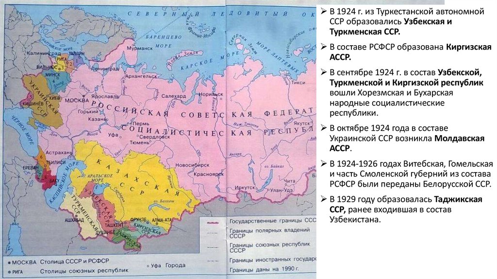 В 1924 г. из Туркестанской автономнойССР образовались Узбекская и