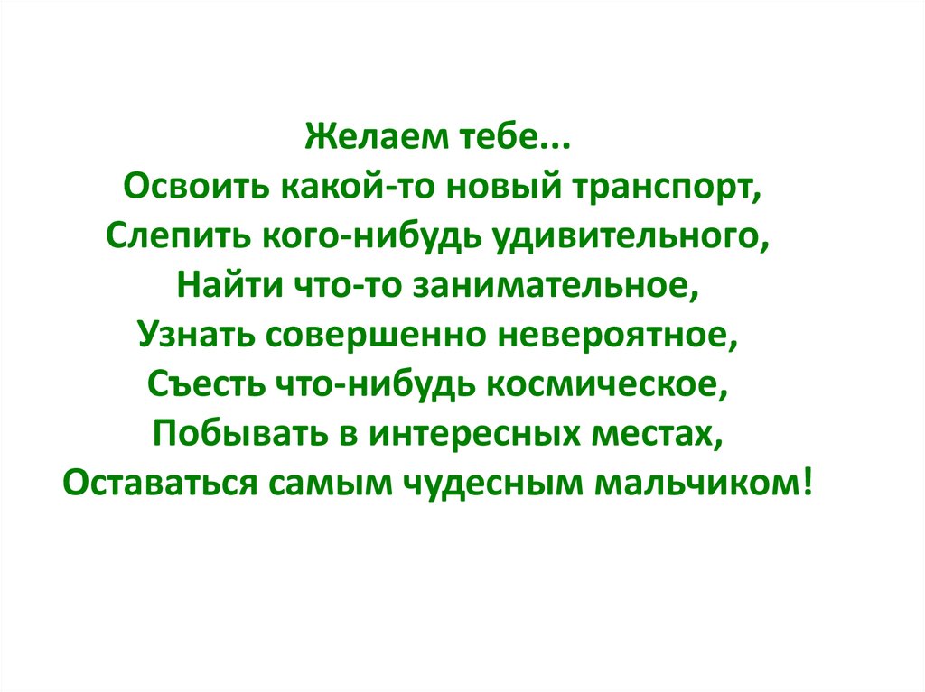 Оставаться самым чудесным мальчиком!