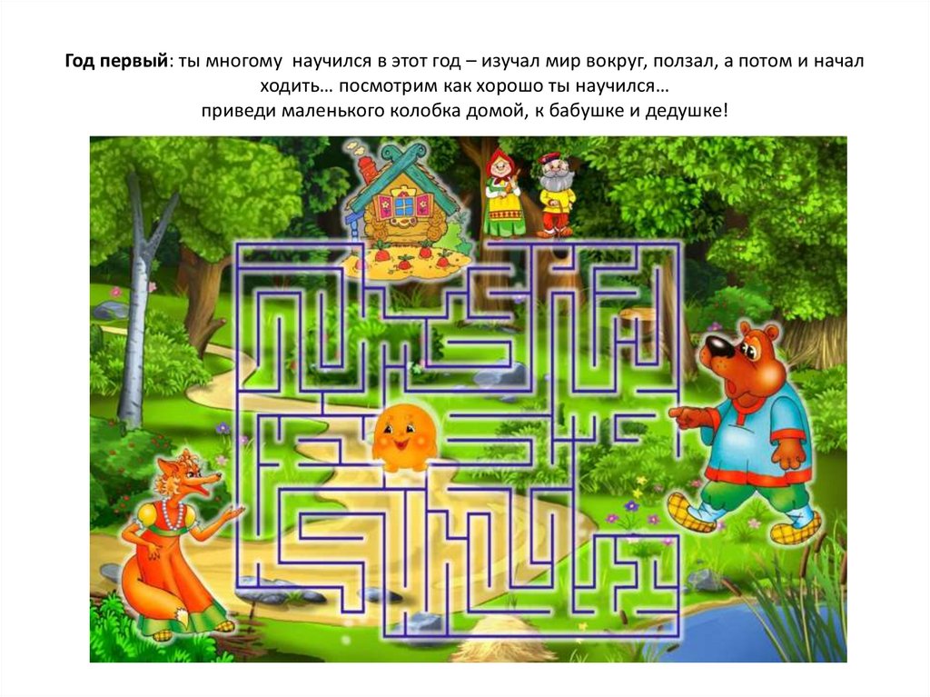 Год первый: ты многому научился в этот год – изучал мир вокруг, ползал, а потом и началходить… посмотрим как хорошо ты научился…