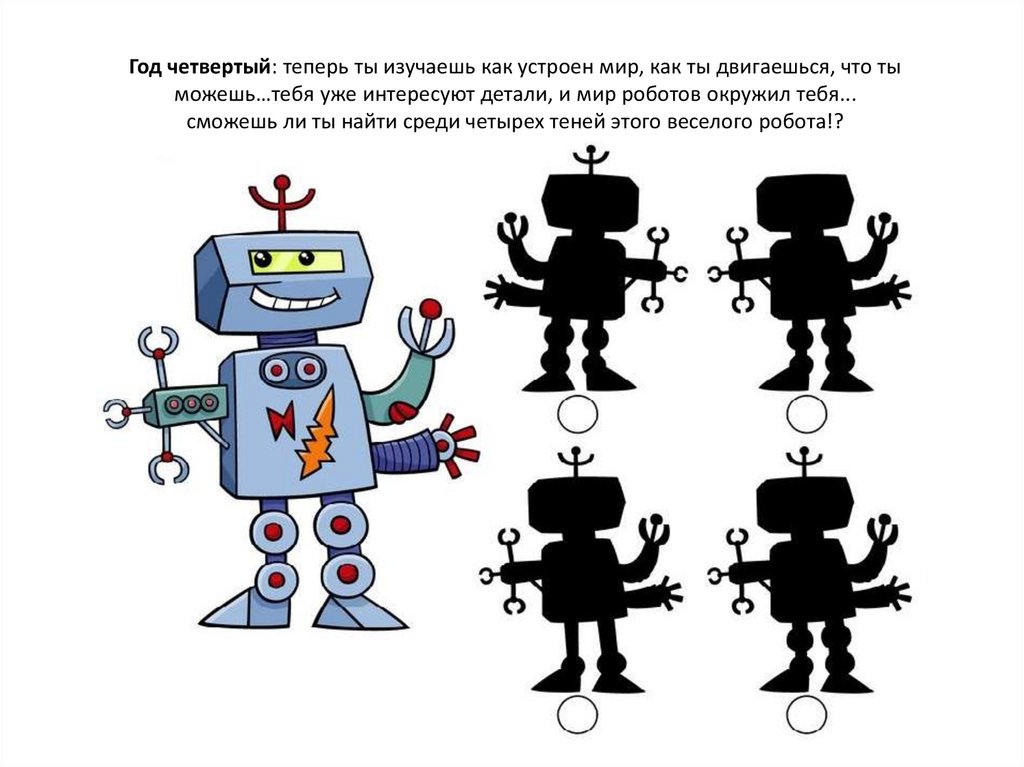 сможешь ли ты найти среди четырех теней этого веселого робота!?