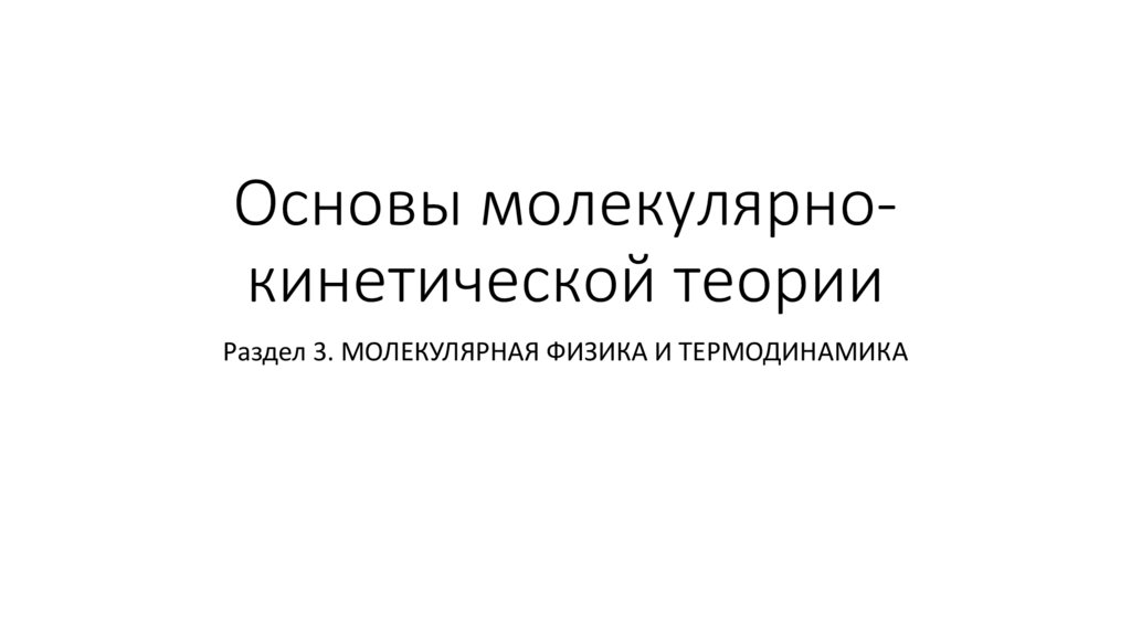 Основы молекулярнокинетической теорииРаздел 3. МОЛЕКУЛЯРНАЯ ФИЗИКА И ТЕРМОДИНАМИКА