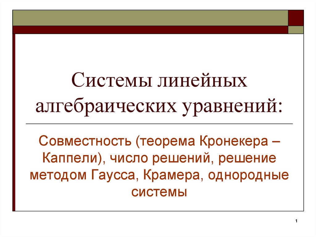 Совместность (теорема Кронекера –Каппели), число решений, решение