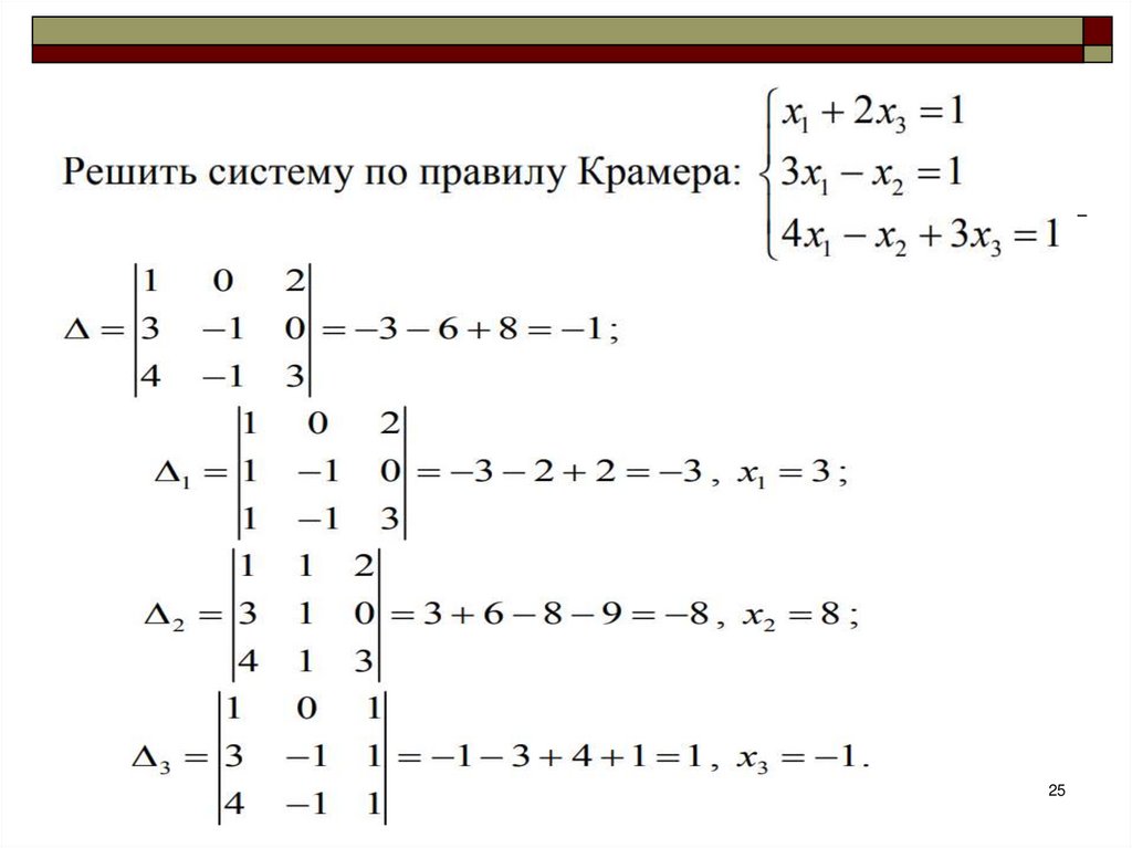 Система из n уравнений с n неизвестными, когдаопределитель матрицы системы отличен от