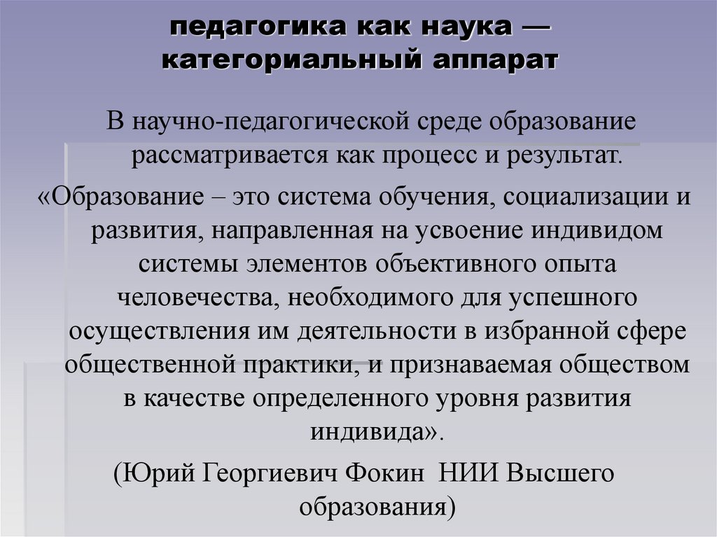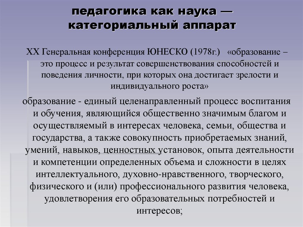 теоретическую науку, т. е. как область отражения педагогических явлений.